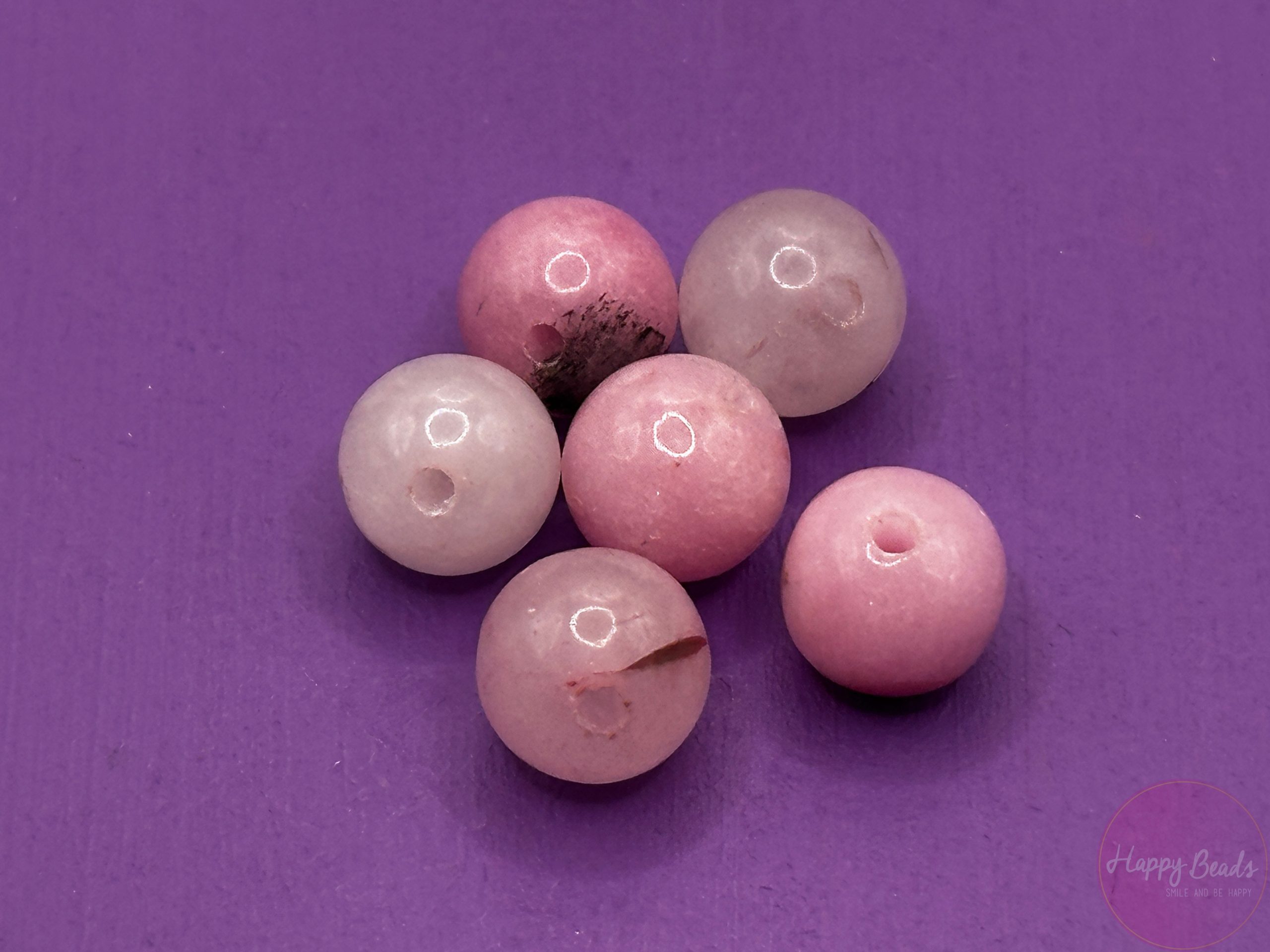 Mooie roze edelsteen kraal van 8mm, gemeleerd roze met af en toe een bruin/zwarte streep/vlekje