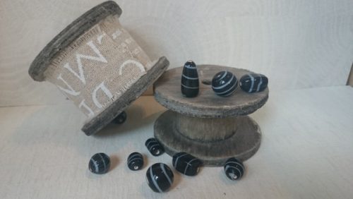 zwarte glaskraal (vol van kleur). met witte streep eroverheen. diversen maten kralen, assorti geleverd.