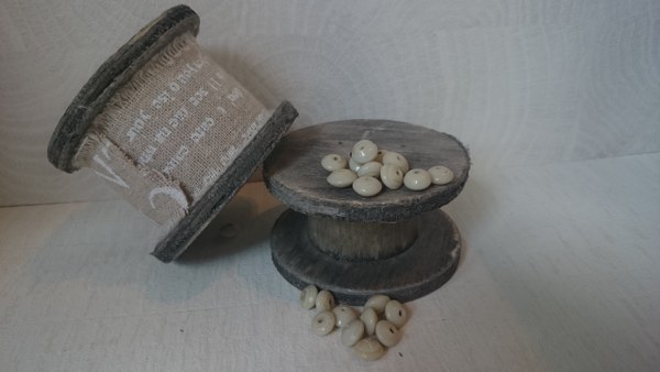 beige (volle kleur) glaskraal in de vorm van een disc.