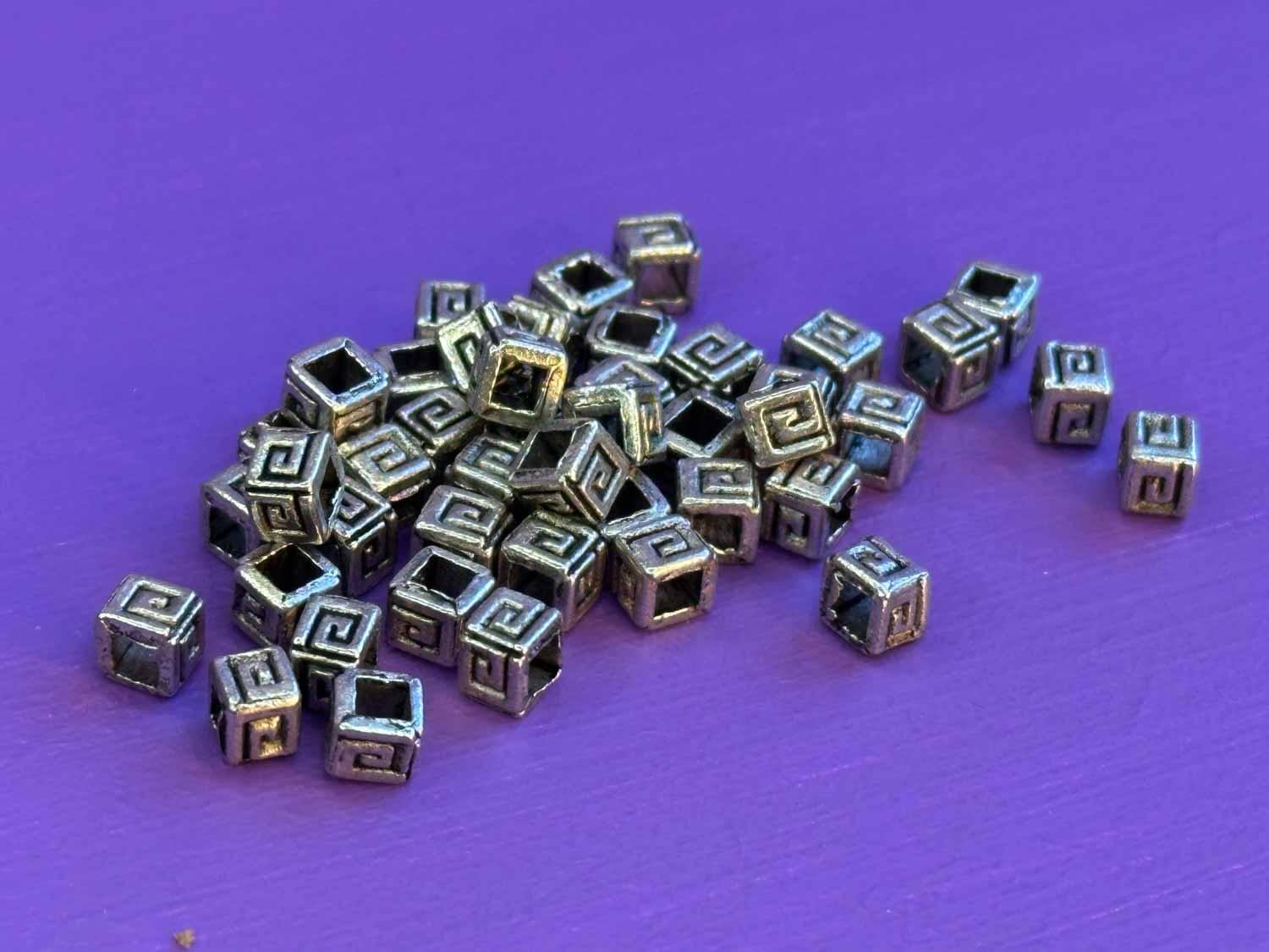 per stuk, kleine vierkante spacer bead met bewerking aan de zijkant